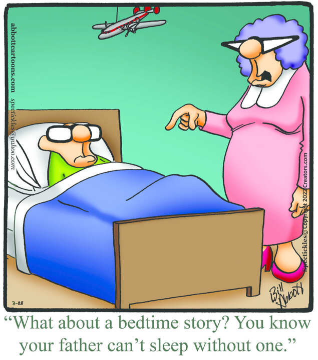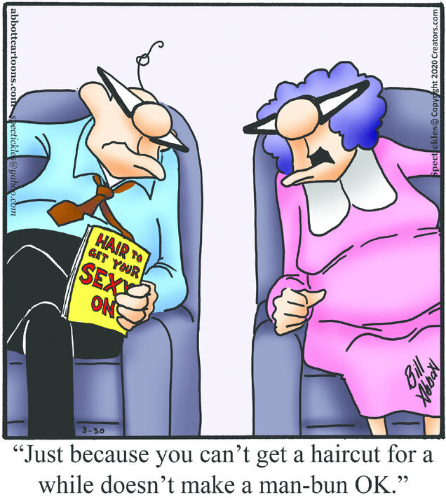 Spectickles, a cartoon primarily about a married couple with, to put it mildly, communication challenges, is an amalgamation of physical traits that author Bill Abbott finds humorous: the deadpan expression and gravity-tugged flesh of Walter Matthau, the powerful presence of Ethel Merman, the glasses of his great-grand-parents and a host of other subtleties.